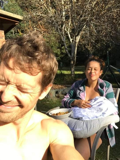 Jas arrived around 7am and immediately got to work setting up and doing everything she could to make me feel better. She asked if she could check my cervix for dilation because we would need to decide whether I would take the antibiotics to prevent any complications from GBS. I agreed, but the contractions were so close together that the idea of lying still for long enough for her to check seemed impossible. After another wonderfully hot shower standing in my yoga position gone wrong, I managed to lie down, spread my legs and invite Jas in for a peek and prod. “Do you want to know? I don’t want you to be disappointed,” Jas asked. Of course, I thought this meant that even though I felt like I had already been riding epic contraction waves, I was about to find out that I was still paddling in the shallows. Or not. 7-8cm! No time for antibiotics, let’s gooooo! My eyes were still closed, but I could hear and feel Jenny’s wonderful presence. Soft caresses, firm squeezes, a kiss on the forehead, quiet words of encouragement and cheeky chuckles with Lewie as they cracked ‘Dad jokes’ together. Into the birthing pool I climbed. Ohhhh what sweet relief. Everything slowed down and I could finally catch my breath and thoughts. When the surges returned, they returned with a vengeance. Up until this point I had worked through them mostly in silence, but now they reached a new, extreme level. Jenny whispered in my ear something along the lines of: “If it comes before you’re ready, it will overwhelm you”. And she was so right! If I was prepared for it, I could breathe through it. If I wasn’t, then I would feel myself panic, squirm and squeal.
